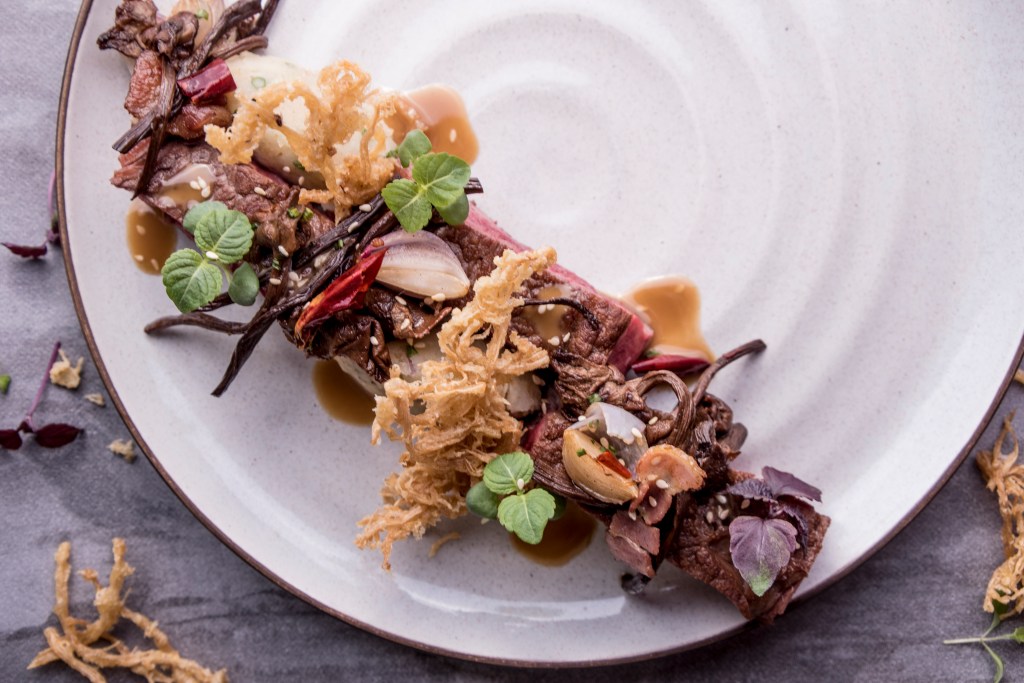 Wagyu Striploin with Tea Tree Mushroom -$58
